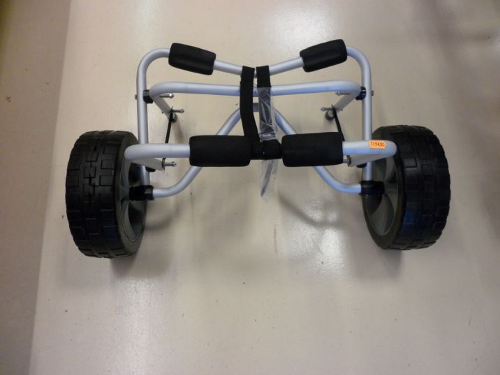 Des roues de grand diamètre simplifient le transport sur des terrains irréguliers. Le chariot se démonte facilement et entre dans la plupart des trappes de kayak. Accepte jusqu'à 45 kg de charge.