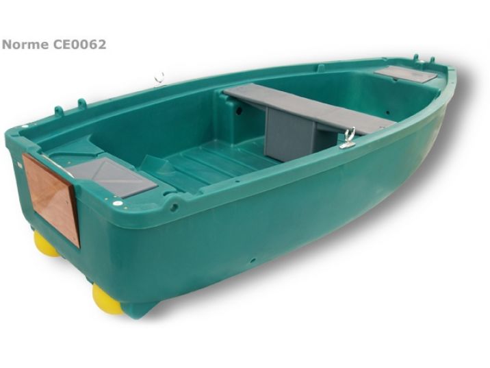 - Fond plat (légèrement catamaran), construction double coque rotomoulée.